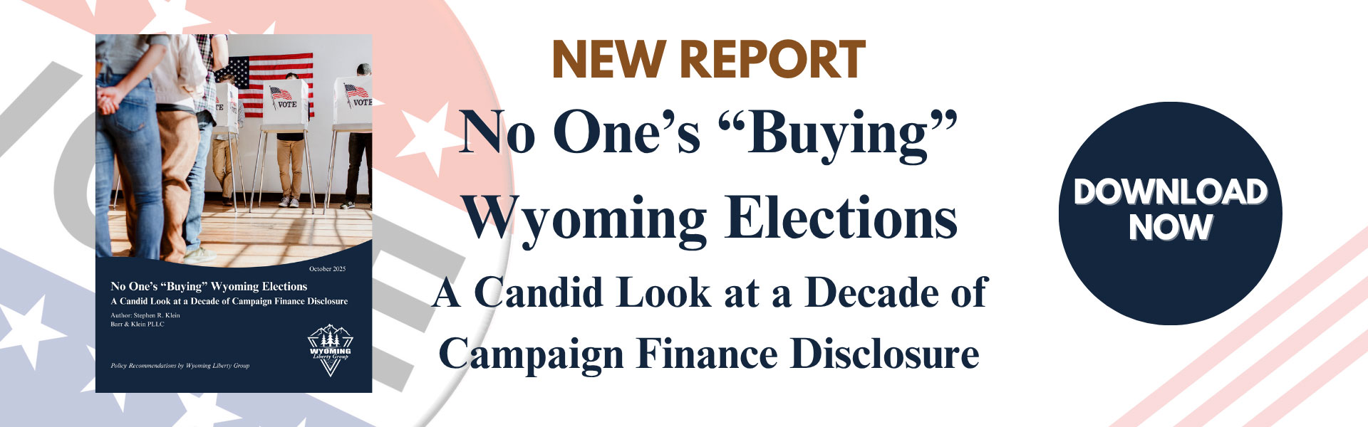 Wyoming Liberty Group, in collaboration with attorney and researcher Stephen R. Klein of Barr & Klein PLLC, has released a new policy study titled "No One's 'Buying' Wyoming Elections: A Candid Look at a Decade of Campaign Finance Disclosure."